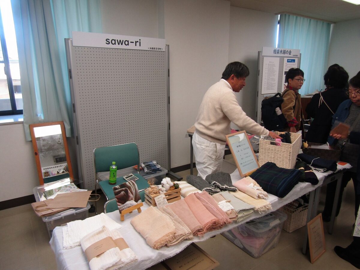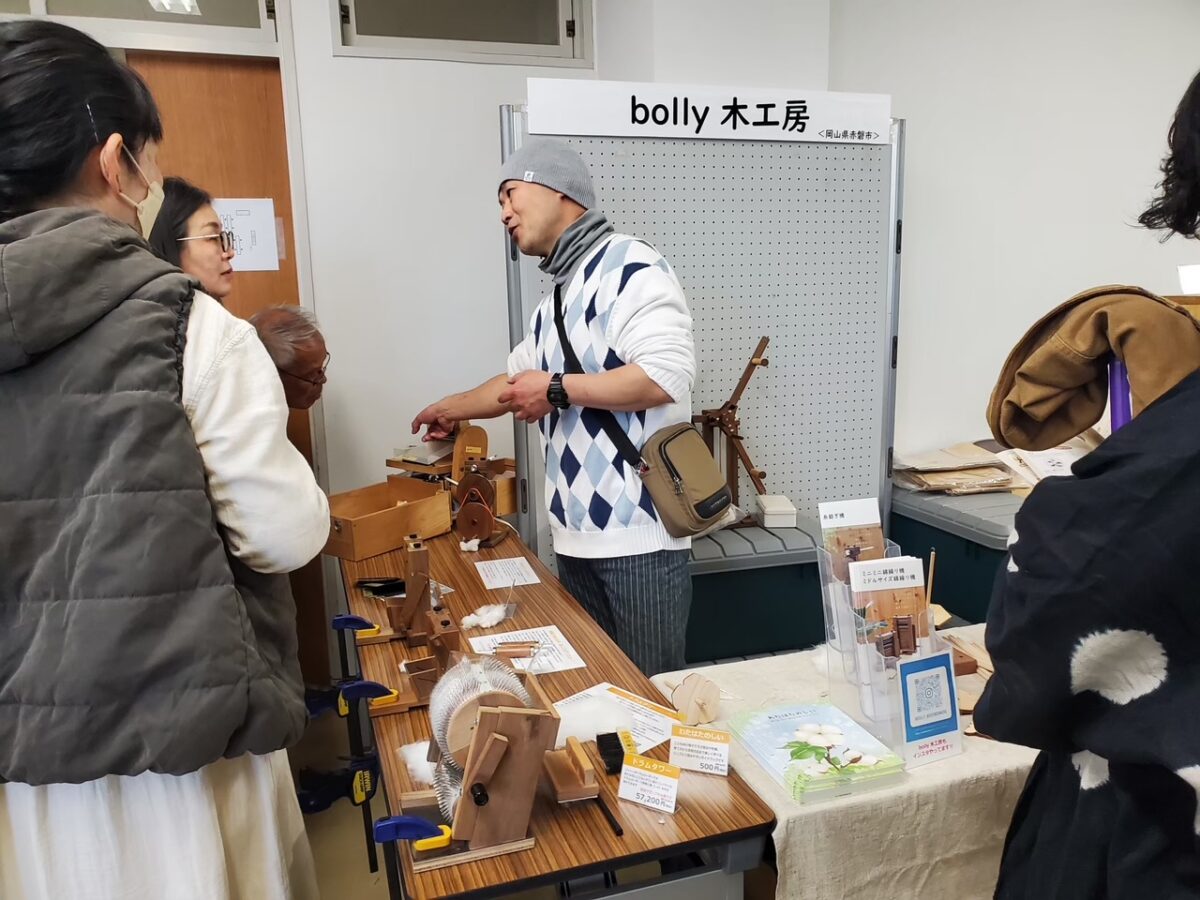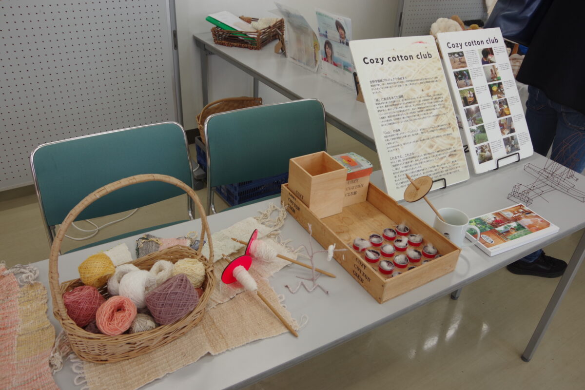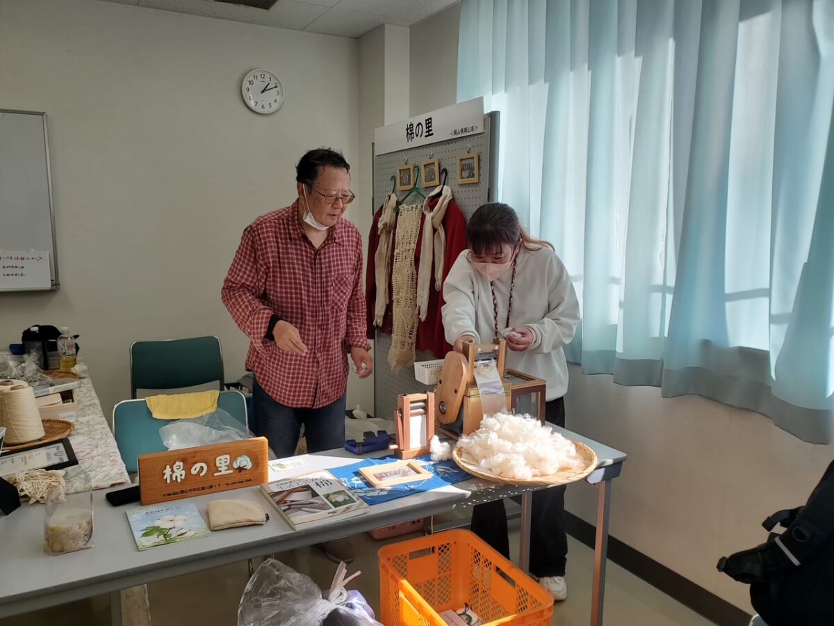 梅田氏は現在、定期的に活動に参加されている方々とともに地域で野菜や綿を栽培し、その綿で糸を紡ぎ機織りにも挑戦されています。また、綿に関心をもって見学に来られる方々のアテンド、市内小学校での出前授業や研修会でのワークショップの講師、さらに道の駅や駅前マルシェへの出店など、綿の魅力を伝える幅広い活動を展開されてます。